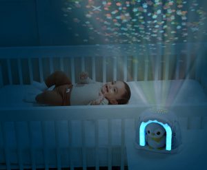 Desde los primeros días, este proyector-iglú con pingüino de peluche llena la cuna de luz y sosiego. Su cúpula lanza un cielo estrellado en cuatro colores que invita al bebé a fijar la mirada y relajarse, mientras el contorno iluminado le da sensación de seguridad. Al colocar o quitar el pingüino, el peque descubre que sus acciones provocan cambios y practica la coordinación ojo-mano. Tres ambientes sonoros —melodías diurnas, sonidos de la naturaleza y dulces nanas— afinan el oído y animan las primeras vocalizaciones. El temporizador de 15, 30 o 45 min y el sensor de llanto ayudan a reestablecer el sueño; volumen y brillo se ajustan al momento. LED fríos, plástico sin BPA y un peluche lavable garantizan higiene y tranquilidad para toda la familia.